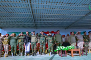 وفي الحفل العسكري, الذي حضره قيادات سياسية وعسكرية استعرض الجنود المهارات الفنية ولياقتهم البدنية ، عبروا من خلالها جهوزيتهم لتولي مهامهم الأمنية والعسكرية ضمن قوات عملية سهام الشرق الثانية لضبط الأمن والاستقرار في محافظة أبين.