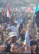 شهدت محافظة الضالع، اليوم الخميس، مظاهرة حاشدة، لتجديد التفويض للرئيس عيدروس الزُبيدي، رئيس المجلس الانتقالي الجنوبي.وأدان المتظاهرون القصف السعودي المتواصل منذ عدة أيام، في عموم أنحاء الجنوب.بالتزامن...