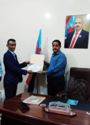 كرم رئيس اتحاد الشباب العربي في محافظات الجنوب الاستاذ احمد عبدالله المحوري اليوم الأربعاء بمقر المجلس الانتقالي بمدينة زنجبار الاستاذ محمد احمد حيدرة ألشقي رئيس الهيئة التنفيذية للقيادة المحلية بال...