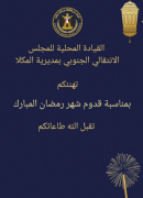 بعث العميد محسن عبدالله الوالي القائد العام لقوات الحزام الأمني برقية تهنئة للقيادة السياسية ممثلة بالرئيس القائد عيدروس الزبيدي وكافة أبناء شعب الجنوب هنأهم فيها بمناسبة حلول شهر رمضان المبارك &...