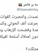 شدد الكاتب الصحفي أسامة بن فائض على انتصار القوات المسلحة الجنوبية على التنظيمات الإرهابية ومليشيات الحوثي الإرهابية بتسليح خفيف. وأشار في تغريدة على حسابه بموقع التدوين المصغر تويتر، اليوم إلى أنها:...