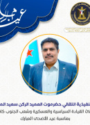 رفع رئيس الهيئة التنفيذية للقيادة المحلية للمجلس الانتقالي الجنوبي بمحافظة حضرموت، العميد الركن سعيد أحمد المحمدي، أسمى آيات التهاني والتبريكات إلى القيادة السياسية الجنوبية، ممثلة بالرئيس القائ...
