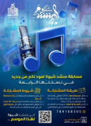 أعلن مكتب الثقافة بمحافظة شبوة عن فتح باب التسجيل للمشاركة في النسخة الرابعة من مسابقة "منشد شبوة"، والتي تهدف إلى اكتشاف ودعم المواهب الشابة في مجال الإنشاد، وتقام برعاية محافظ المحافظة الشيخ ع...